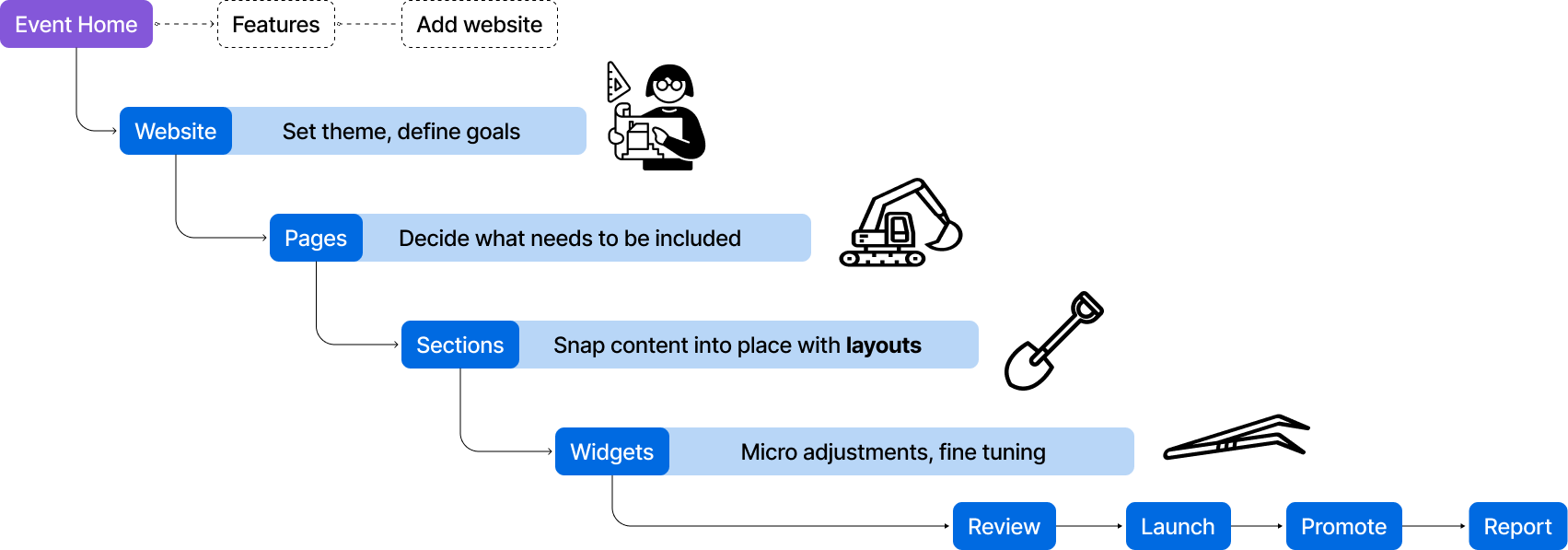 Event planners often start working on the event website early on in a new event. Hence, improving the website-building experience would enable us to deliver value earlier in the customer journey.